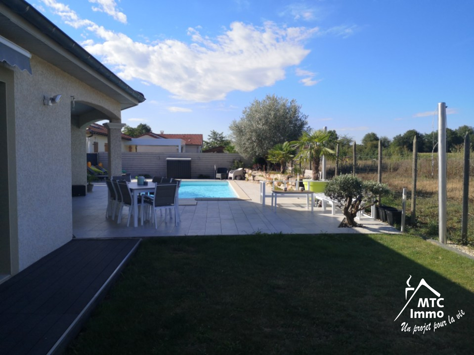 Il s'agit d'une maison contemporaine de PLAIN PIED de 2011, de 129 m2 habitable. Cette villa comprend également un garage, une piscine (de 8m X 4m) et 100 m2 de terrasses et plages, le tout implanté sur un terrain de 600 m2.