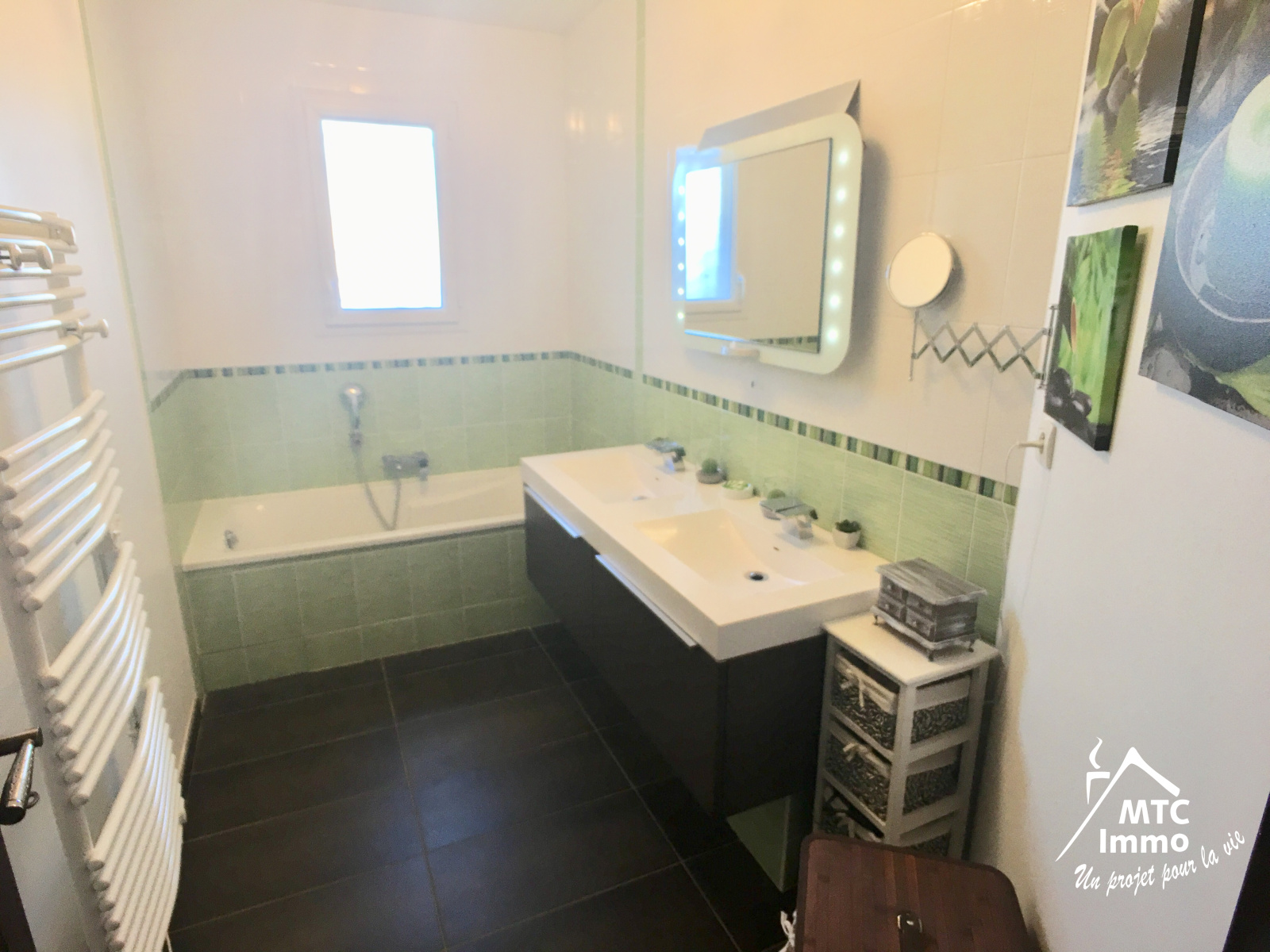 TYPE DE CHAUFFAGE : chauffage électrique infracable au sol dans les pièces de vie et par des raditeurs pour le coté nuit.