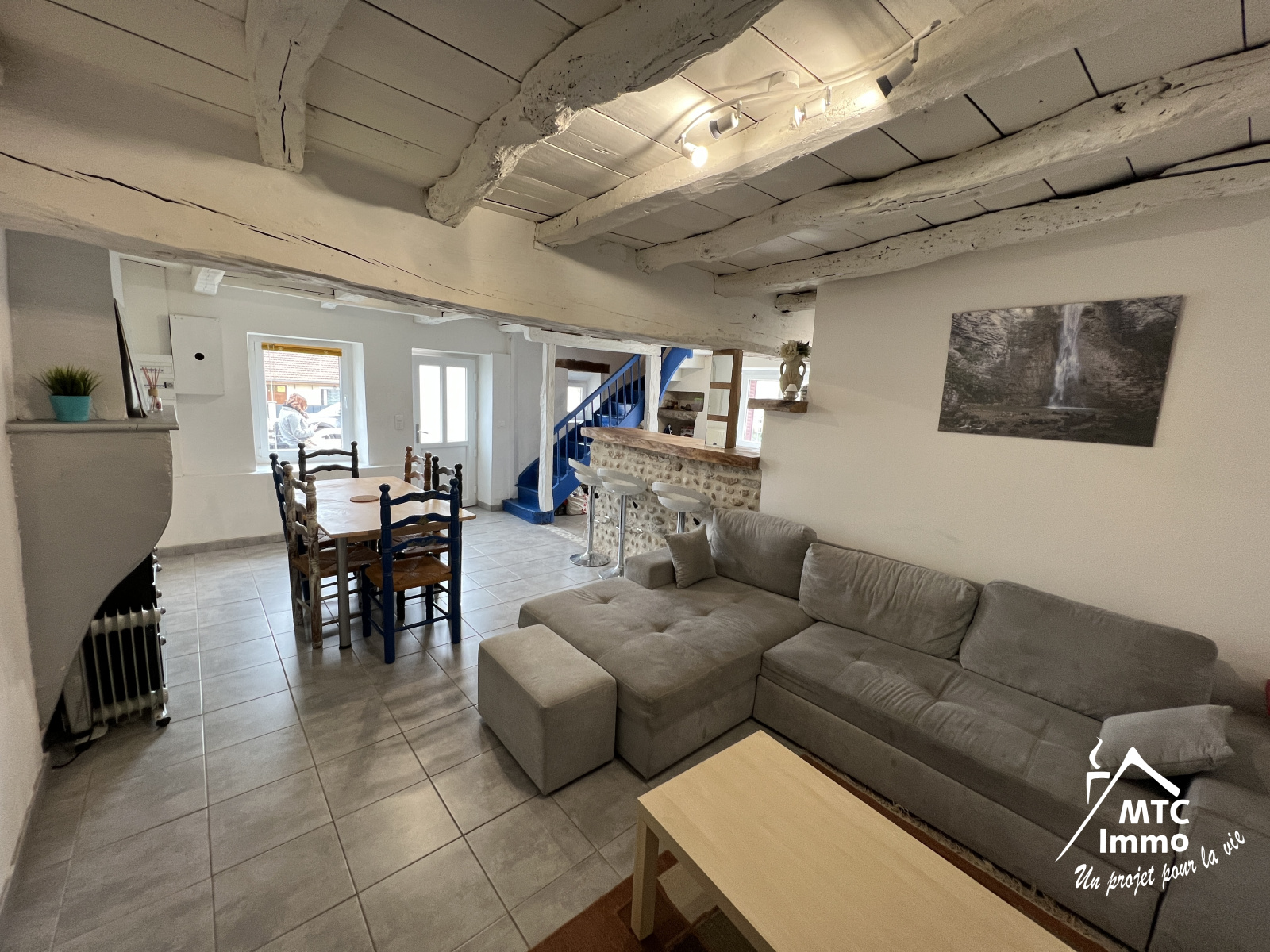 La maison se situe à proximité immédiate des premiers commerces de nécessités, à cinq minutes de la plaine de l'Ain et à dix minutes de l'entrée d'autoroute de Pérouges, ce qui permet de rejoindre Lyon et son centre ville en 40 minutes.