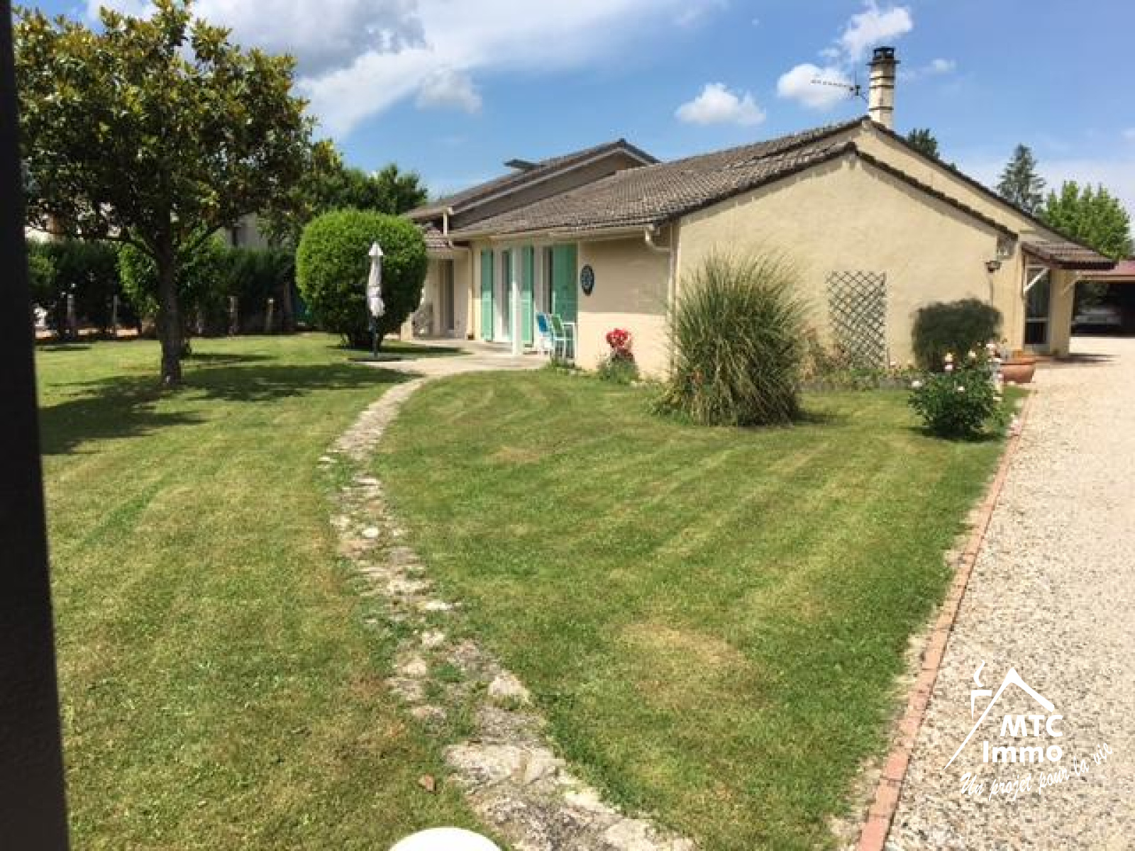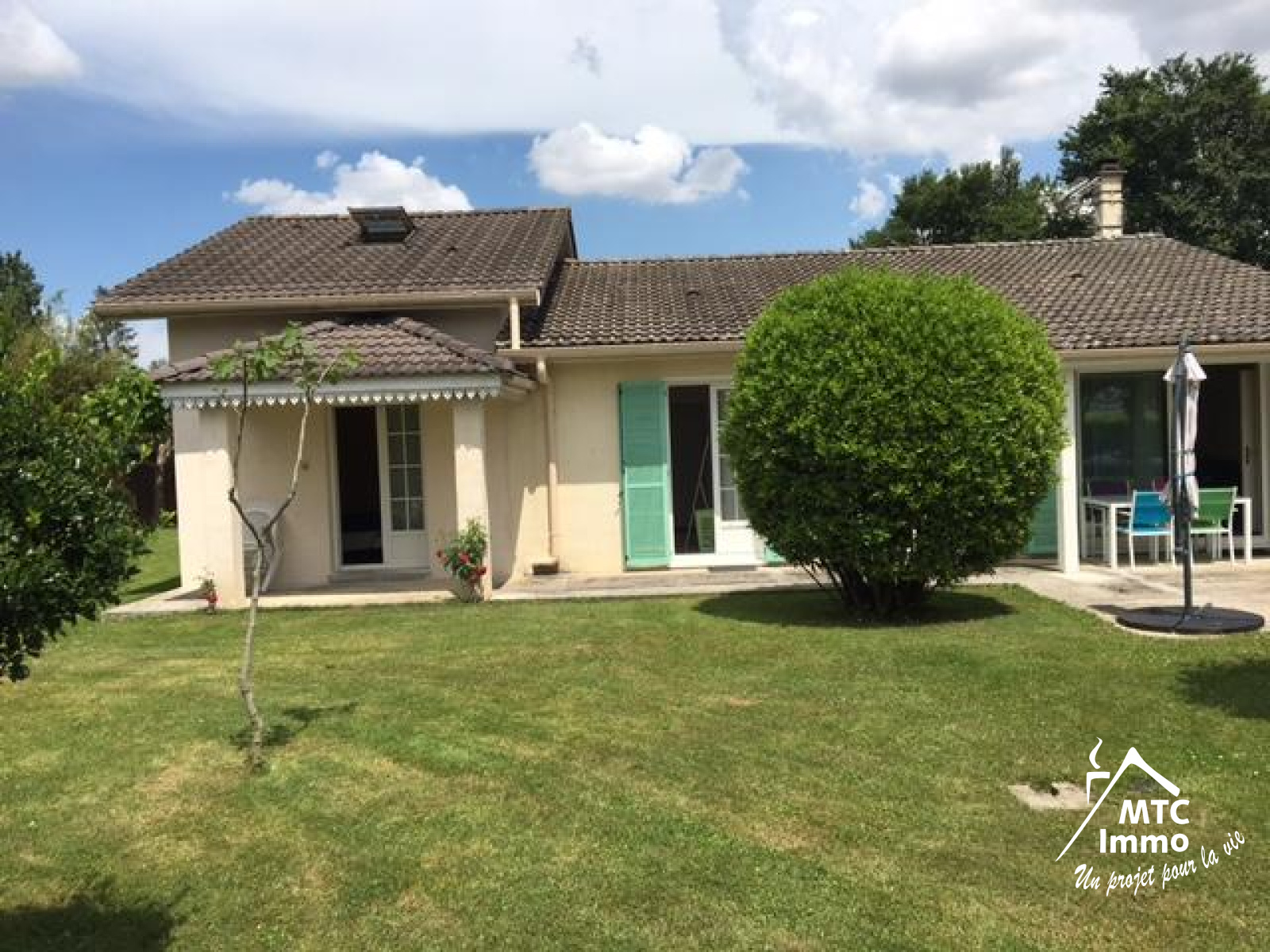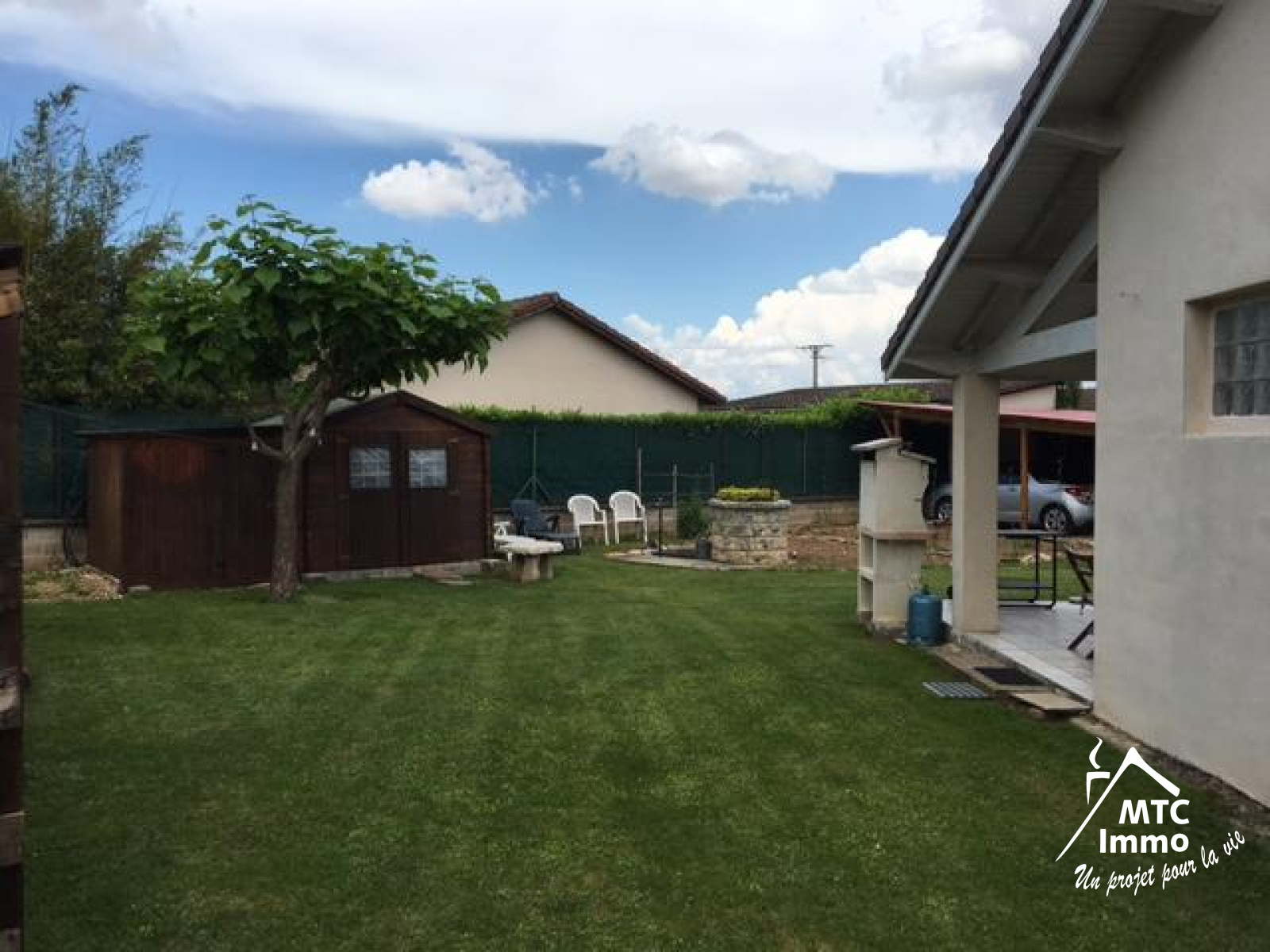 Sur l'extérieur nous retrouvons une terrasse de 18 m² et une autre de 35 m², 3 petits chalets en bois (abris de jardin de 8 à 12 m² et un abris à voitures). Le terrain est très bien entretenu et piscinable. Cette maison est située dans un petit hameau à 5 minutes de la gare de la Valbonne Béligneux, de l'autoroute et de toutes les commodités. Les transports scolaires passent dans le hameau et l'accès à Lyon se fait en 25 minutes.