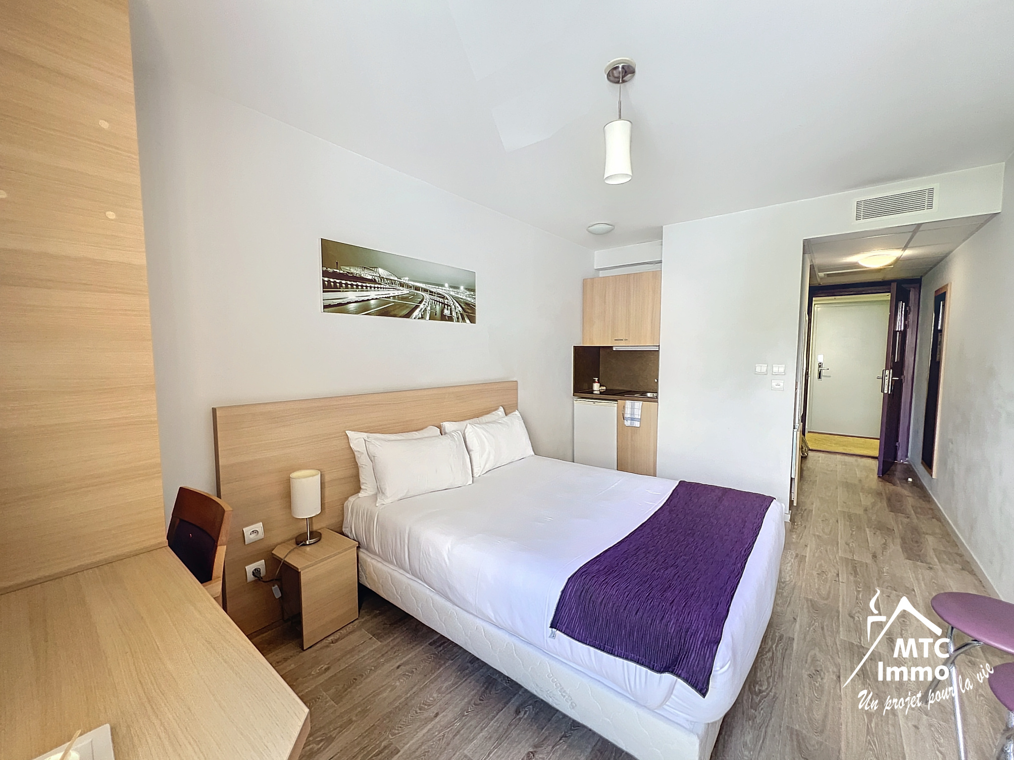 Studio meublé de 19,50m2 situé au 1er étage d'une résidence de tourisme de 2012 avec ascenseur. Composé d'une entrée, chambre, kitchenette, une salle d'eau et WC, ce studio est entièrement géré par une société spécialisé (SOGERELY) qui se charge de louer le bien. Grâce à l'avantage du Loueur Meublé Non Professionnel vous pourrez bénéficier de revenus nets d'impôts avec un loyer garanti de 3929€/an soit une rentabilité de 8%. Bail commercial en cours jusqu'au 25/08/2030.