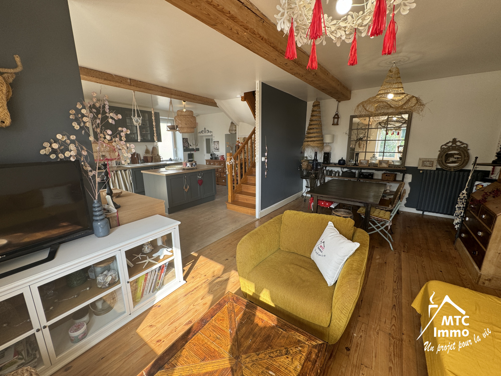 Le rez-de-chaussée se compose d'une entrée et une cuisine ouverte sur la pièce de vie. Attenant à la cuisine, vous trouverez un coin cellier et buanderie ainsi qu'une cave. Un WC avec son point d'eau complète le bas. A l'étage, le dégagement dessert à trois grandes chambres, une salle de bains et un escalier permettant l'accès aux combles. Ces derniers peuvent être aménagés, ils ont une surface utile de 51 m². Vous serez séduit par la lumière naturelle qui pénètre dans les pièces.