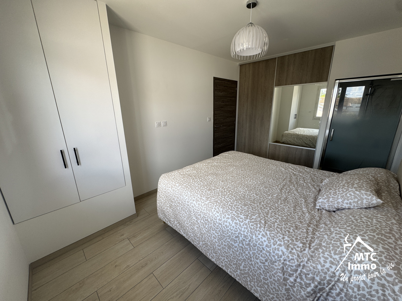 - Trois chambres avec placards muraux, dont une équipée d’une douche privative,