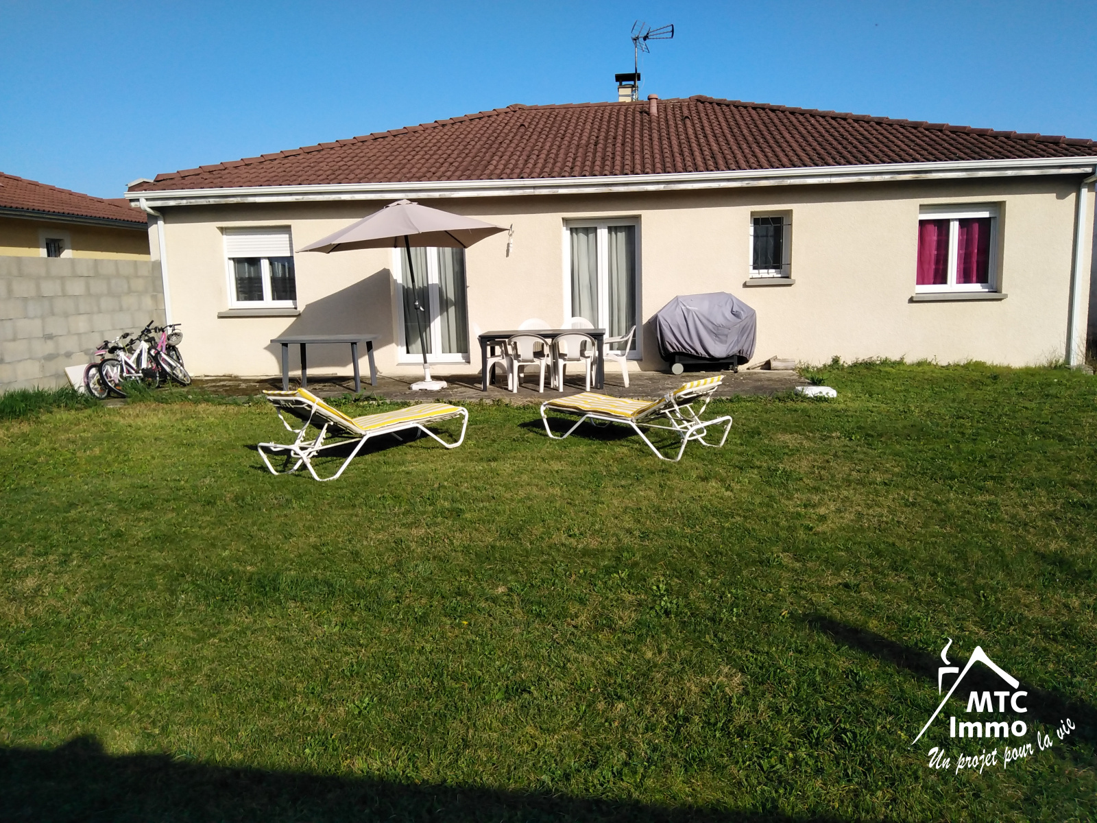 Maison de plain pied de 101 m², avec un garage de 15 m², le tout implanté sur un terrain de 600 m². La maison se compose d'une cuisine ouverte sur le séjour salon, une chambre avec une salle d'eau avec WC, trois chambres, une salle de bain avec douche, un WC, des dégagements. A l'extérieur, la maison dispose d'une terrasse de 27 m².