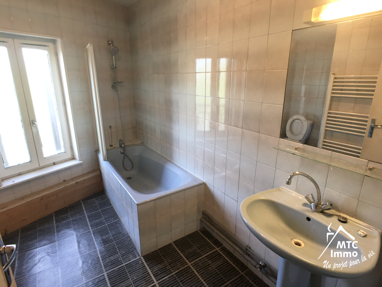À l'étage il y a des dégagements, une salle de bain (avec wc), 1 bureau avec un petit balconnet ainsi qu'une chambre (pouvant passer à environ 15 m² si l'on ouvre sur le bureau).